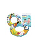 Nafukovací kruh je vyrobený ze silného a odolného vinylu v atraktivních barvách s grafickým motivem. Ideální na výlety s dětmi k jezeru nebo k moři. Pomáhá dítěti zvyknout si na vodu a zároveň chrání hlavu před potopením.