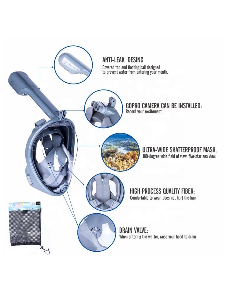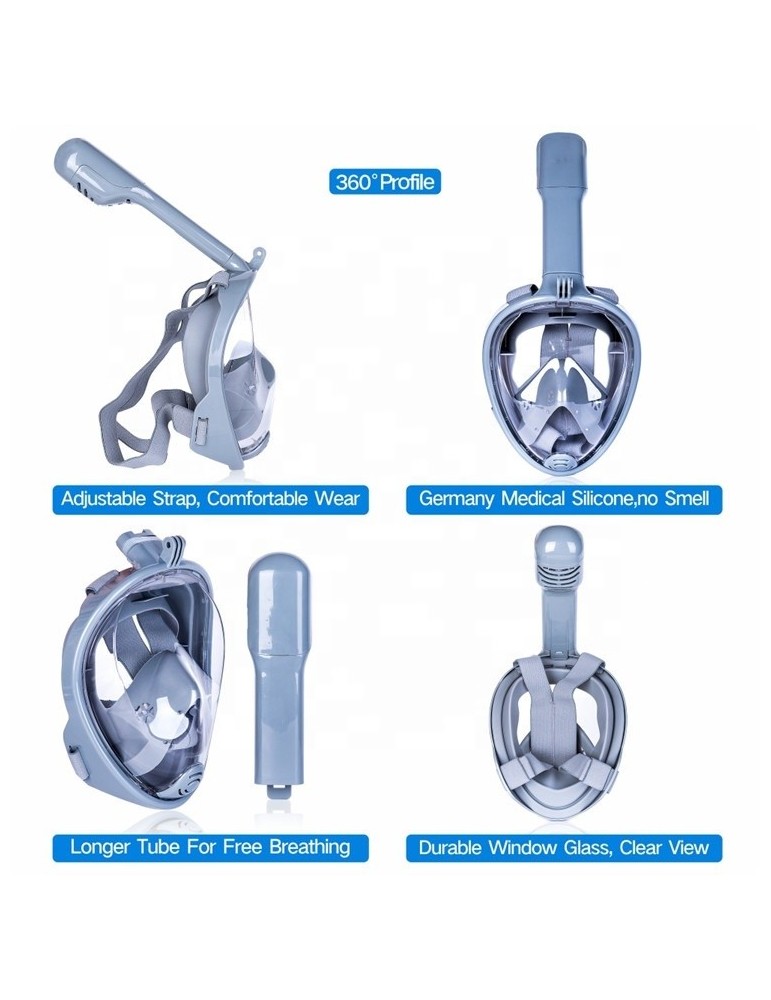 Celoobličejová maska na šnorchlování pro dospělé - Šedá