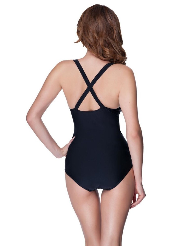 Elegantní jednodílný střih s vizuálním zeštíhlujícím efektem
