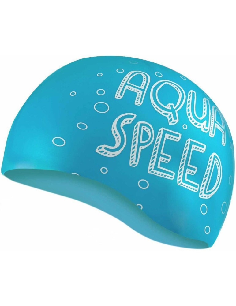 Detská zábavná silikónová plavecká čiapka KIDDIE má funky dizajn na jednej strane a logo Aqua Speed na druhej.