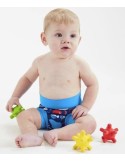 Dizajn bol navrhnutý plaveckými inštruktormi a rodičmi, ktorí pamätali na potreby svojich detí. Tak jednoduché a napriek tomu tak účinné, žiadne šnúrky, žiadny suchý zips, žiadna guma. Funguje to! Môžu byť nosené s alebo bez konvenčných plávacích plienok – podšívka sa veľmi ľahko čistí.